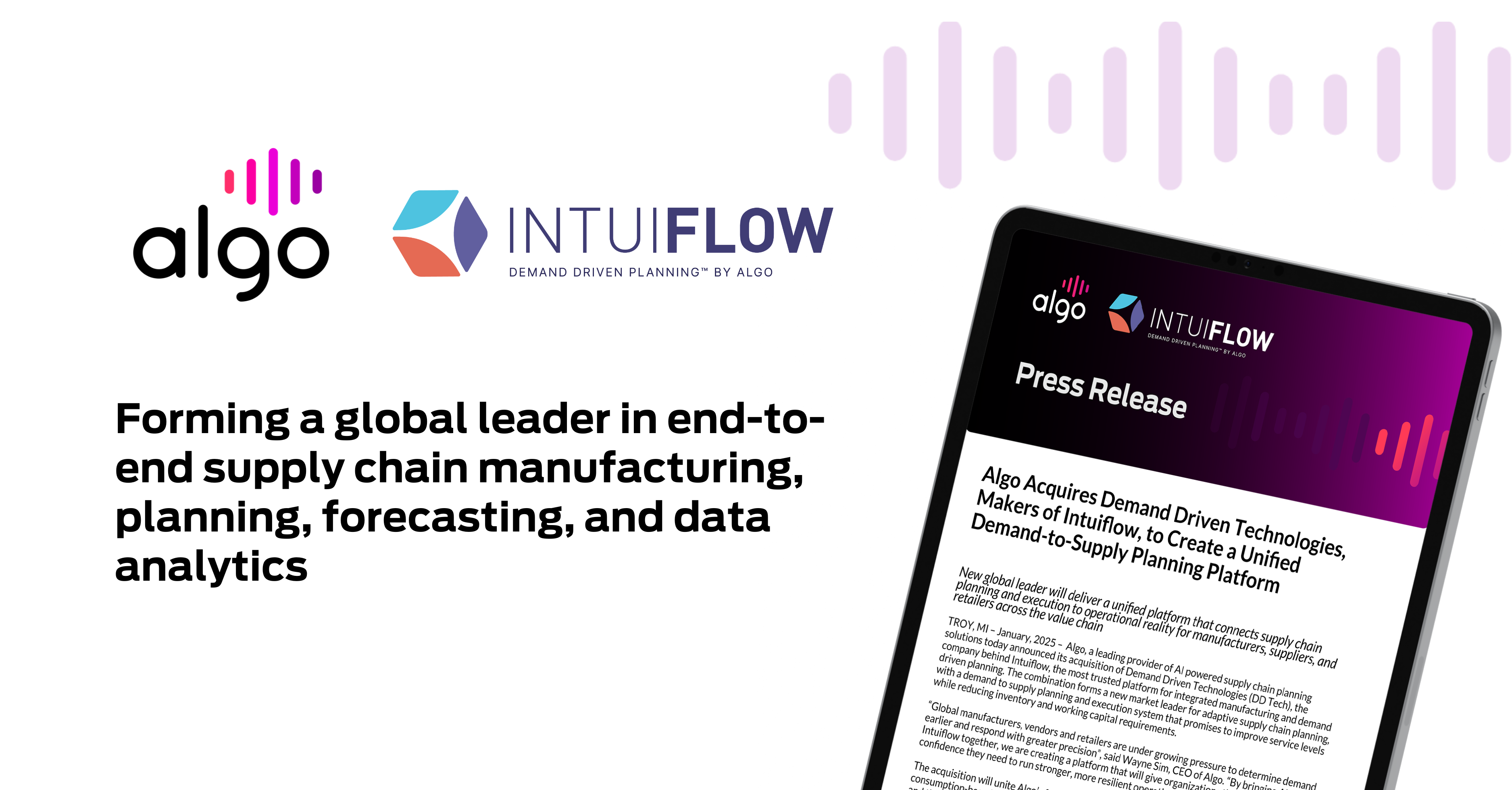 The acquisition will unite Algo’s forward looking demand intelligence with Intuiflow’s consumption-based supply planning, providing planners with insightful, forward-looking signals and then turning those signals into clear priorities for materials, production, and inventory. The result is a shared cadence from plan to production, where planners can see demand sooner, pace operations to actual usage, and make timely decisions on materials and capacity with greater confidence.