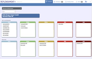 The priority rules on the upstream and downstream loops may not only be FIFO: time buffer boards give the red/yellow/green priorities aligned on demand at key points (for example on the pacesetter station and at the end of the process).