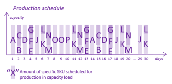 Because supply and production lead times are longer than customer tolerance times, the company needs to plan over this period. S&OP and forecast recalculation are time and energy intensive. Also, after every MRP run, the company gets a new result that contradicts the previous one, which confuses everyone, especially people on the shop floor who were supposed to physically execute it. So, in an attempt to stabilize the system, the production schedule is usually done monthly, one or two months in advance.