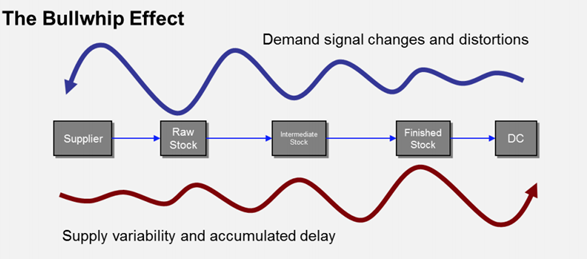 Cette situation est aggravée par la nervosité de la chaîne d'approvisionnement, où les changements de haut niveau dans le programme de production principal entraînent des changements amplifiés dans les délais et les quantités aux niveaux inférieurs. Il en résulte un effet de fouet qui est à l'origine de l'ennemi fondamental auquel nous devons faire face : pas assez de stocks adéquats et trop de stocks inadéquats.