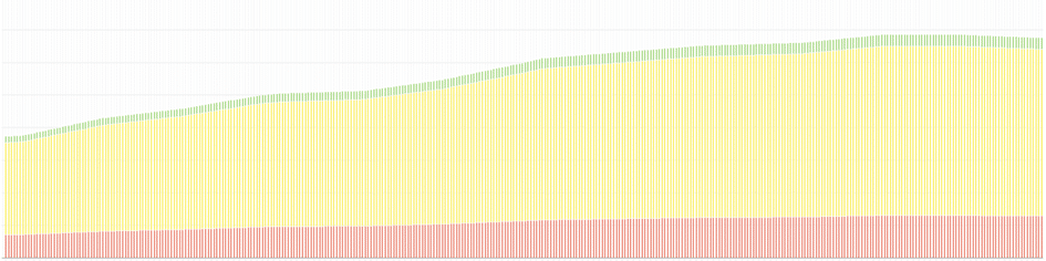 Simplement, la boucle est plus longue. En termes DDMRP, le top du vert représentera un nombre de jours plus élevé, et la zone jaune sera de proportion plus importante.