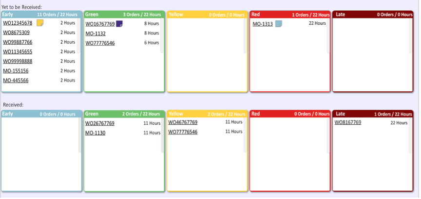 Dans un atelier, si la réunion 5 mn se fait en face du tableau de buffer ci-dessous, tout le monde est d’emblée d’accord sur les priorités et le statut d’avance/retard.